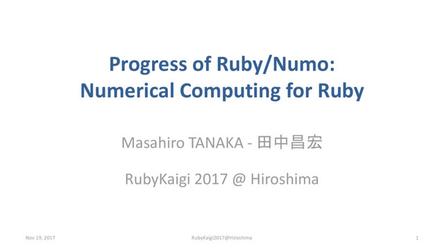 [4,4] – 2-dimentional array ▶ shape = [4,4,4] – 3-dimensional array Nov 19, 2017 RubyKaigi2017@Hiroshima 17 Shape = Array of sizes along dimensions a[0,0] a[0,1] a[0,2] a[0,3] a[1,0] a[1,1] a[1,2] a[1,3] a[2,0] a[2,1] a[2,2] a[2,3] a[3,0] a[3,1] a[3,2] a[3,3] a[0] a[1] a[2] a[3] a[0,0,0] a[0,0,1] a[0,0,2] a[0,0,3] a[0,1,0] a[0,1,1] a[0,1,2] a[0,1,3] a[0,2,0] a[0,2,1] a[0,2,2] a[0,2,3] a[0,3,0] a[0,3,1] a[0,3,2] a[0,3,3]
