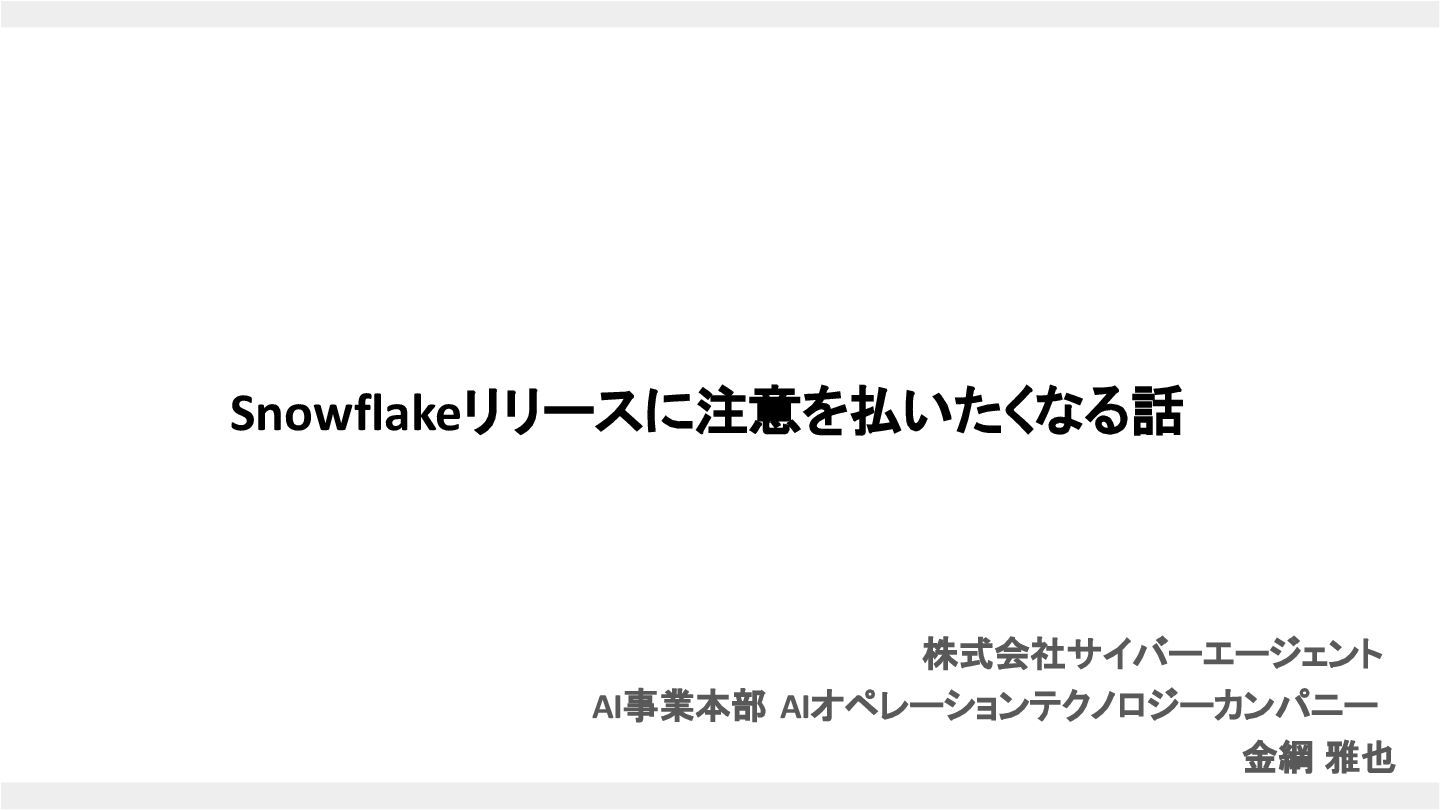 Snowflakeリリースに注意を払いたくなる話 株式会社サイバーエージェント AI事業本部 AIオペレーションテクノロジーカンパニー 金綱 雅也