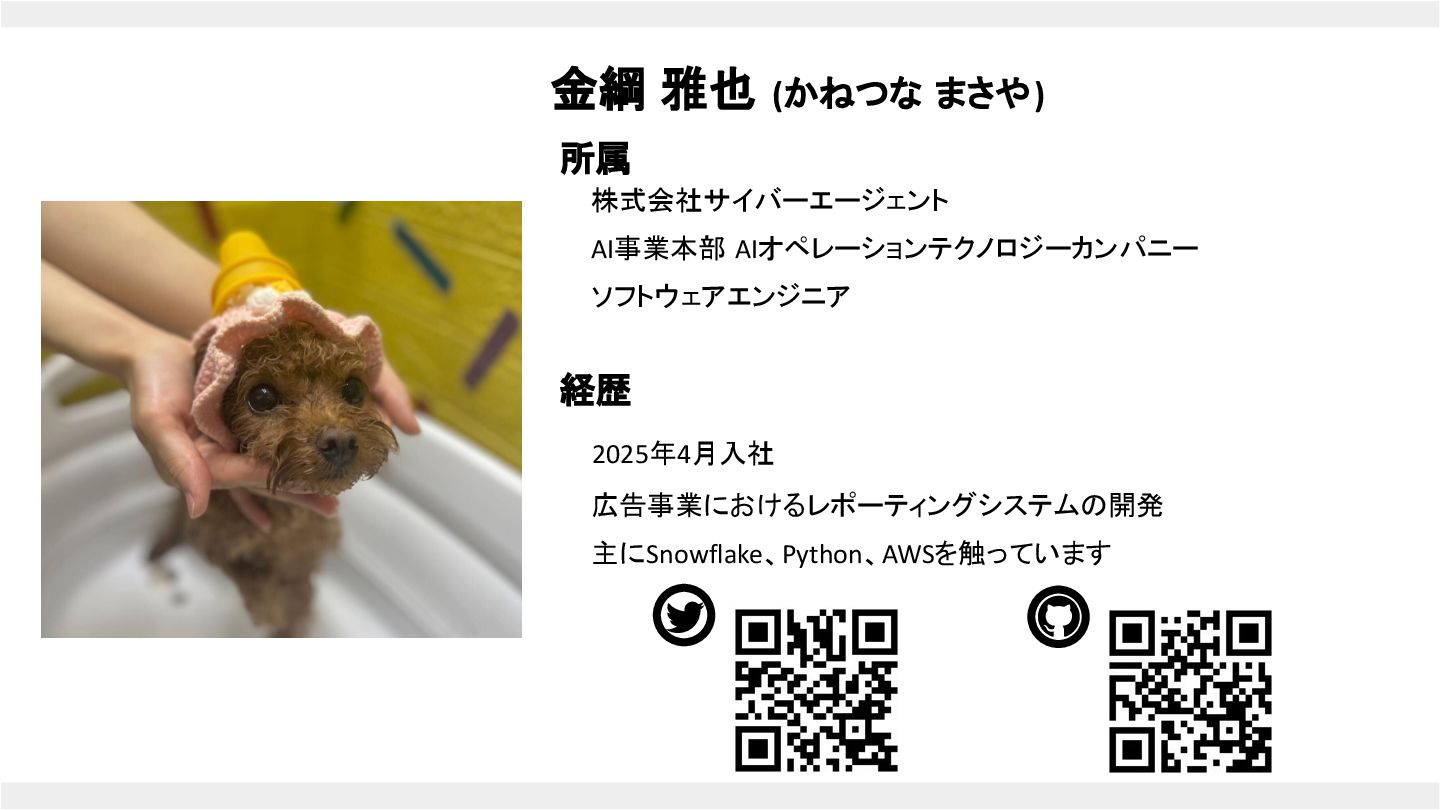 金綱 雅也 (かねつな まさや) 所属 株式会社サイバーエージェント AI事業本部 AIオペレーションテクノロジーカンパニー ソフトウェアエンジニア 経歴