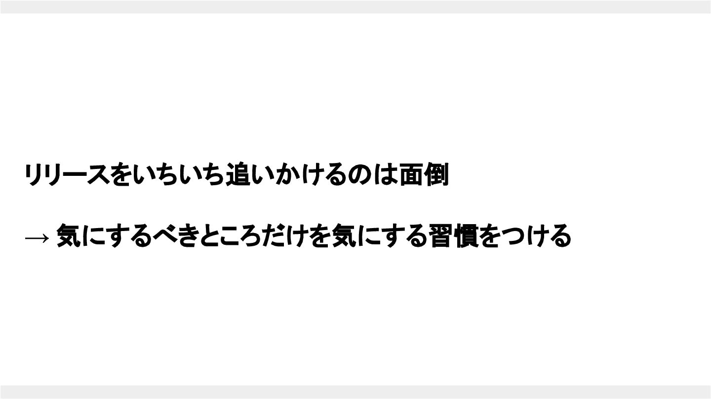 リリースをいちいち追いかけるのは面倒 → 気にするべきところだけを気にする習慣をつける