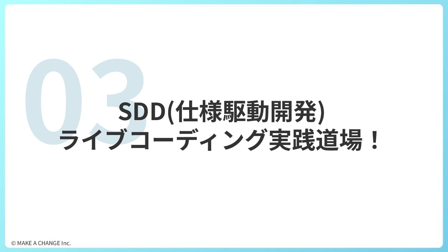 03 SDD(仕様駆動開発) ライブコーディング実践道場! © MAKE A CHANGE Inc.