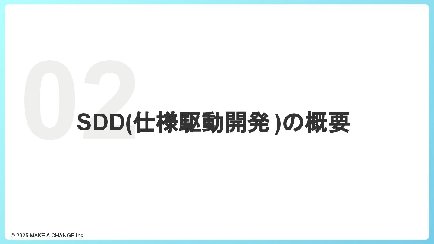 02 SDD(仕様駆動開発 )の概要 © 2025 MAKE A CHANGE Inc.