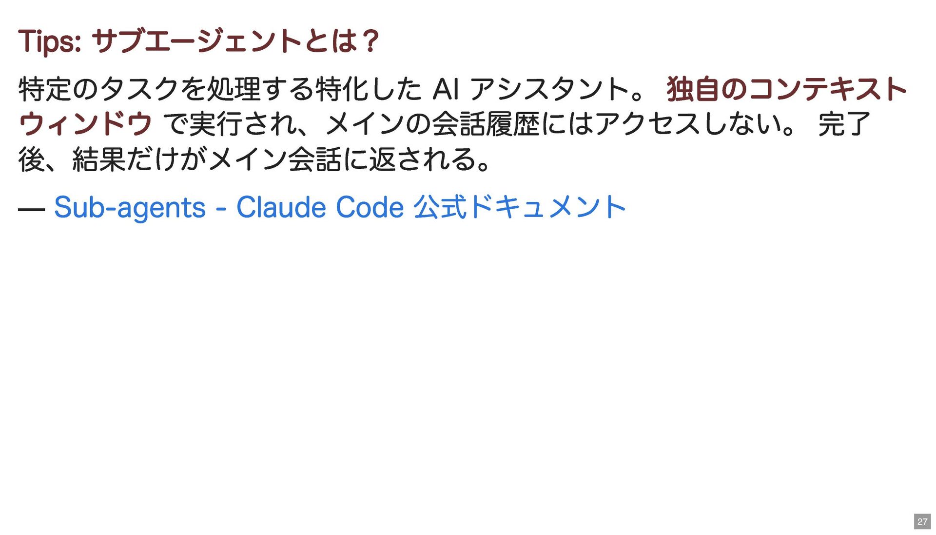 — Sub-agents - Claude Code 公式ドキュメント 27