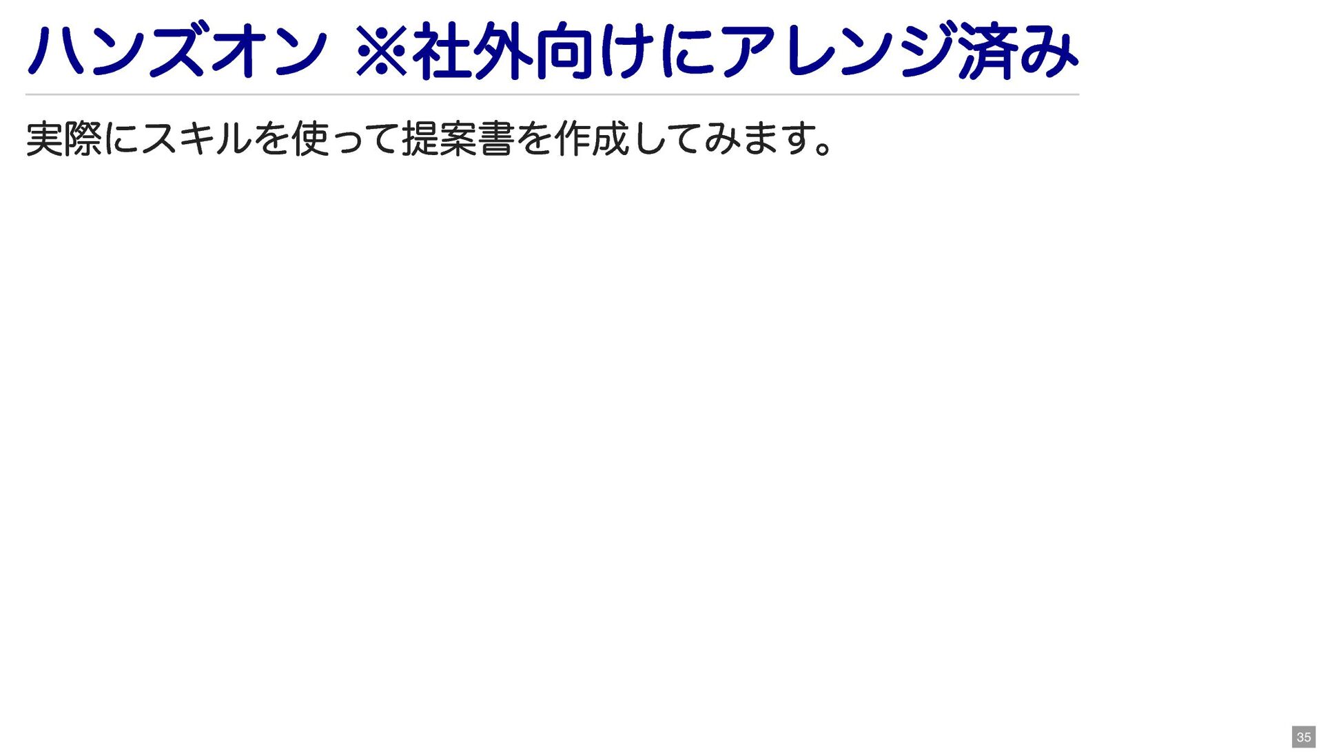 ハンズオン ※社外向けにアレンジ済み 実際にスキルを使って提案書を作成してみます。 35