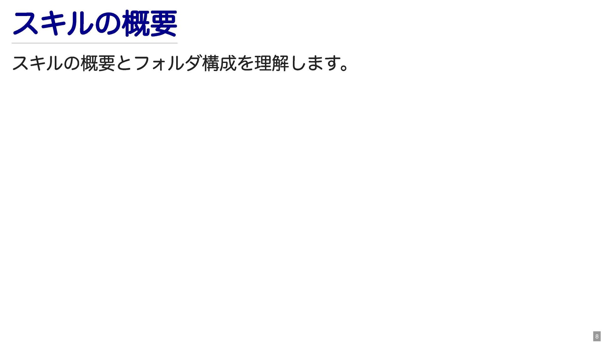 スキルの概要 スキルの概要とフォルダ構成を理解します。 8