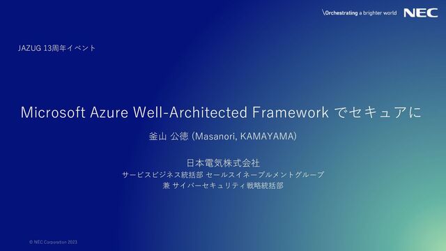 © NEC Corporation 2023 Microsoft Azure Well-Architected Framework でセキュアに 釜山
