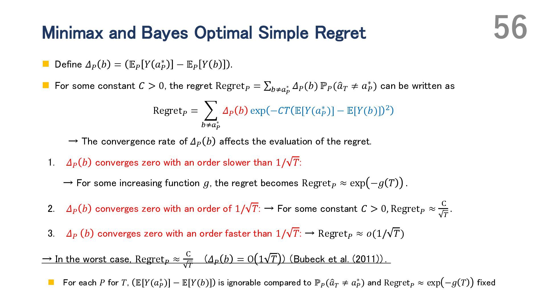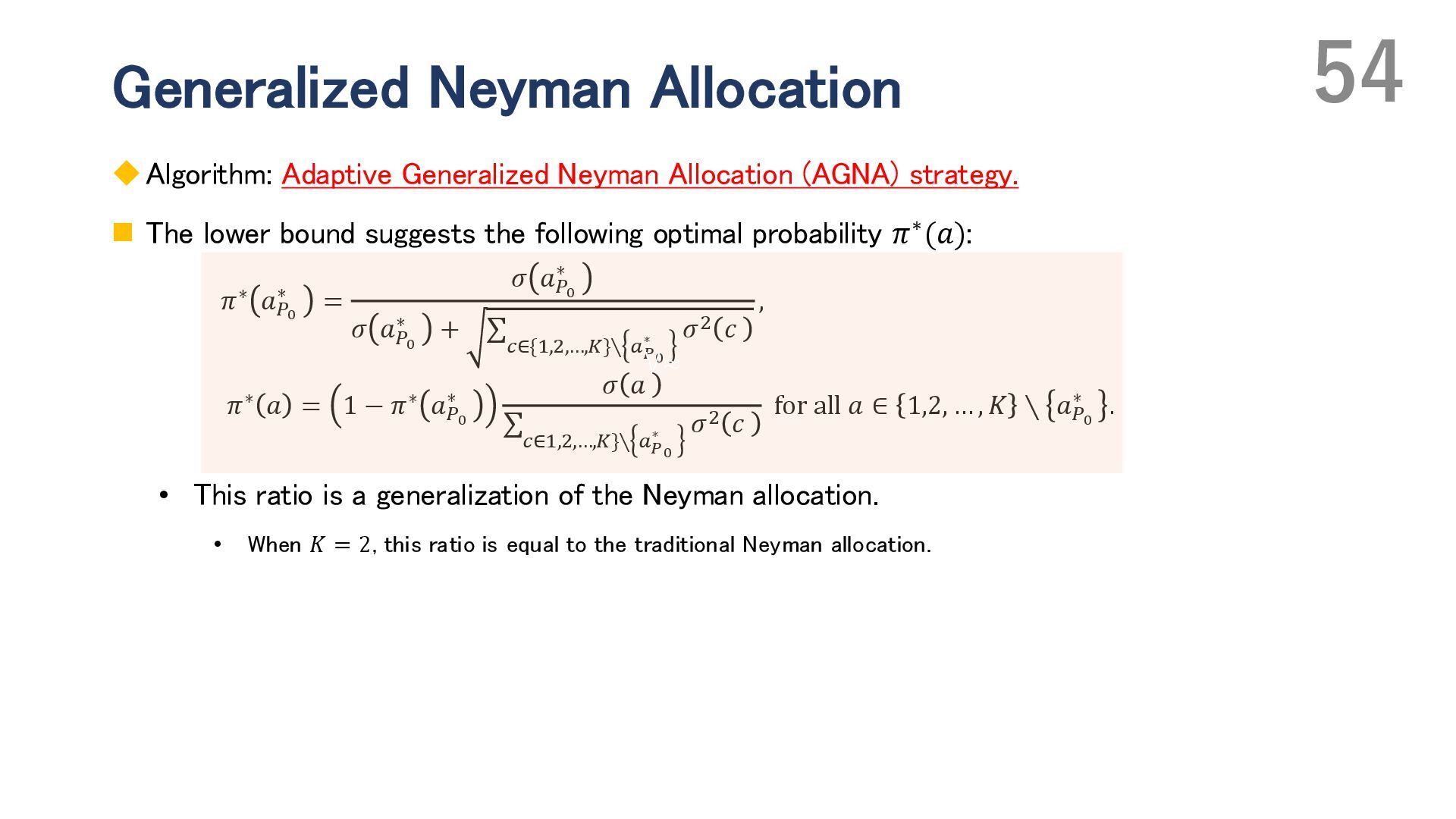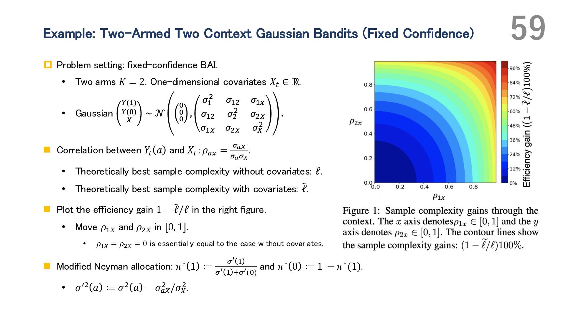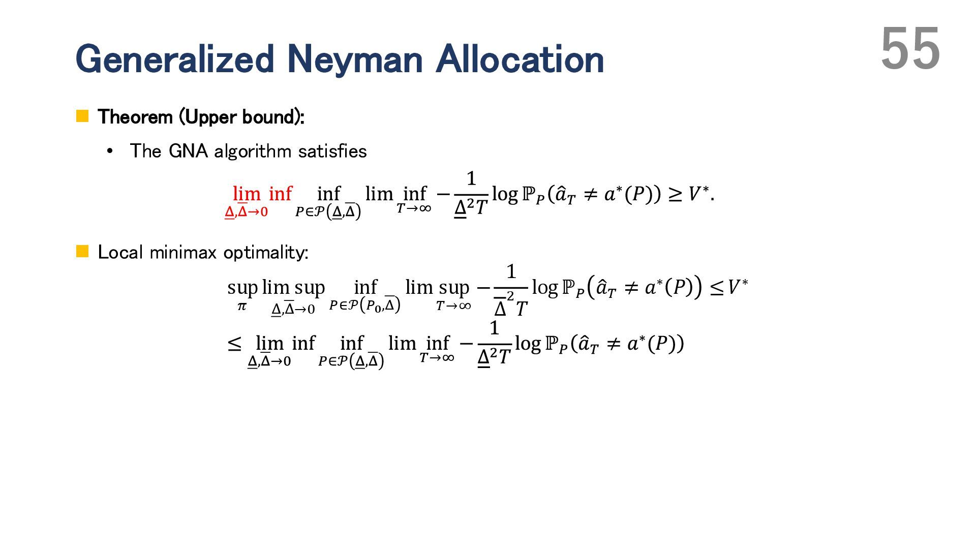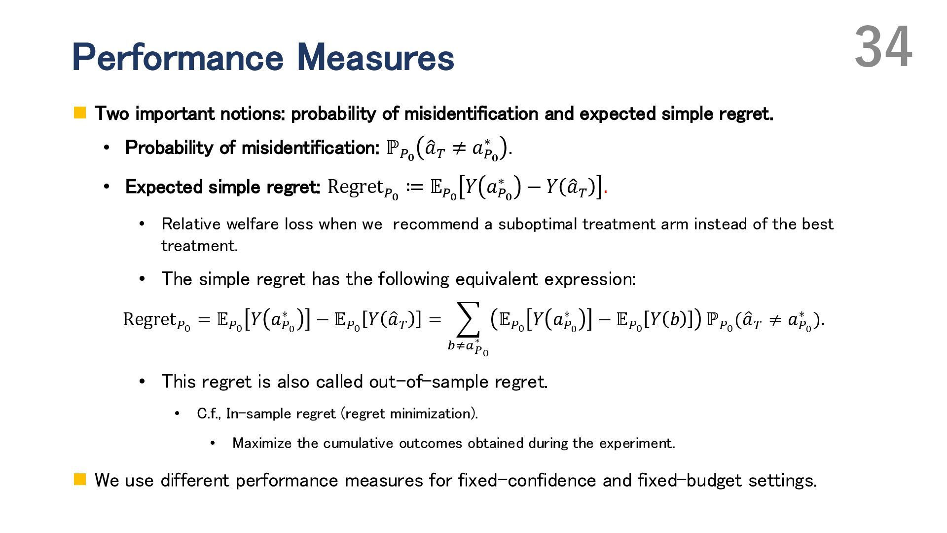 Adaptive experimental design has attracted attention for improving the efficiency of both average treatment effect (ATE) estimation and treatment choice. In such designs, the probability of assigning treatments (i.e., the propensity score) can be updated during the experiment based on previously collected observations. In ATE estimation, the objective is to reduce the estimation error of the ATE, whereas in treatment choice, the goal is to identify the best treatment—the one with the highest expected outcome. While ATE estimation typically involves binary treatments, treatment choice problems often consider multiple treatment options. In this talk, I begin by discussing adaptive experimental design for ATE estimation. I introduce the basic approach based on Neyman allocation, which provides a treatment-assignment probability that minimizes the asymptotic variance of ATE estimators, and then present several extensions, including adaptive optimization of the covariate distribution. Next, I address adaptive experimental design for treatment choice, also known as the best-arm identification problem, and highlight the challenges in developing “optimal” algorithms, especially in the presence of multiple treatments. I propose minimax and Bayes optimal algorithms for treatment choice in the setting without covariates. In particular, I generalize Neyman allocation to construct a minimax optimal algorithm. Finally, I discuss how incorporating covariates can further enhance the efficiency of treatment choice, focusing on conditional treatment choice (policy learning).
