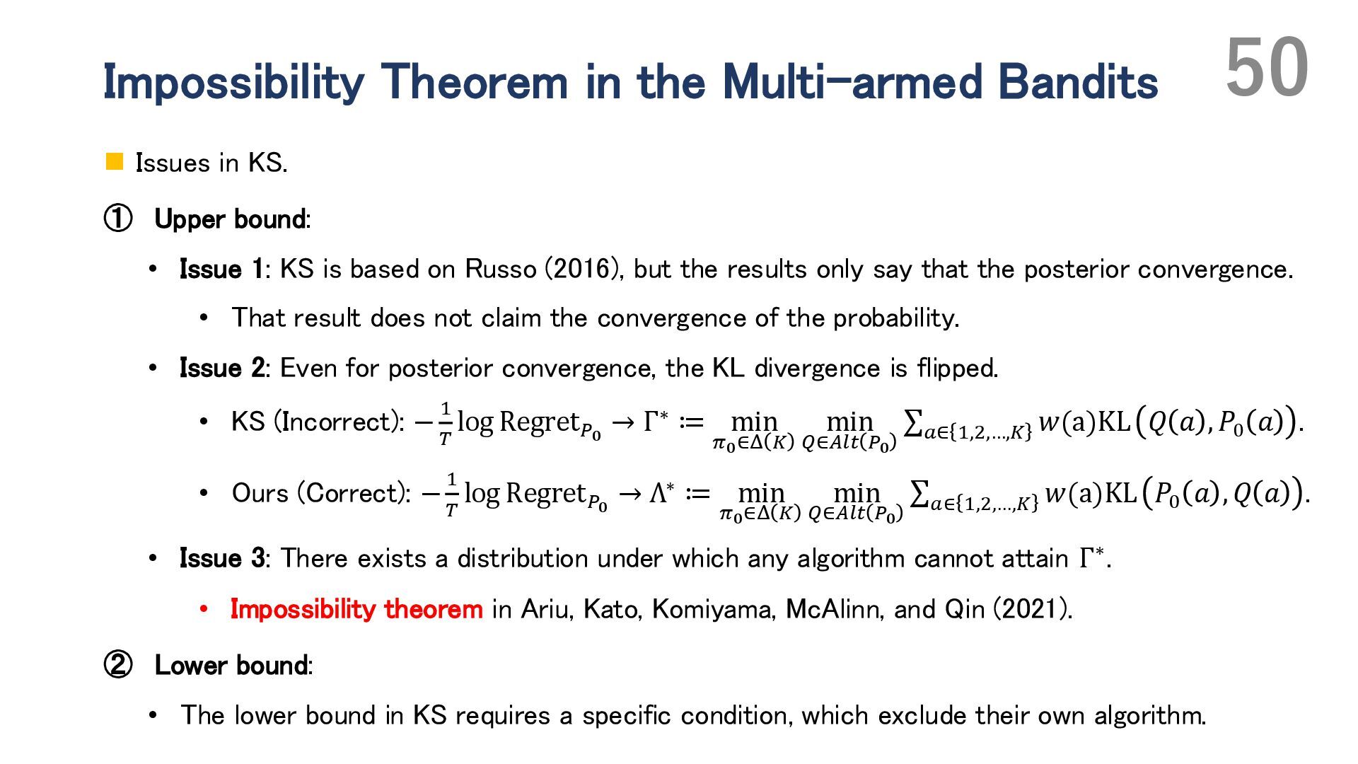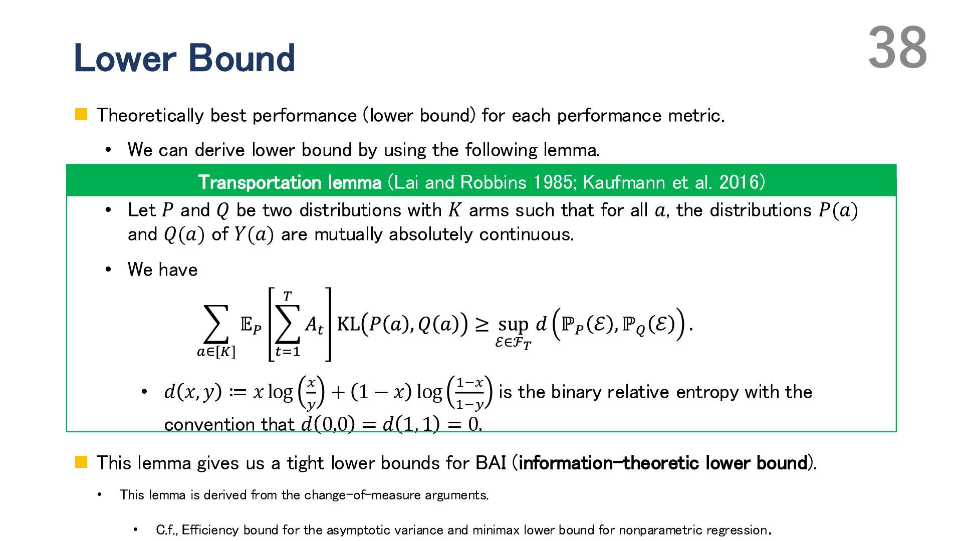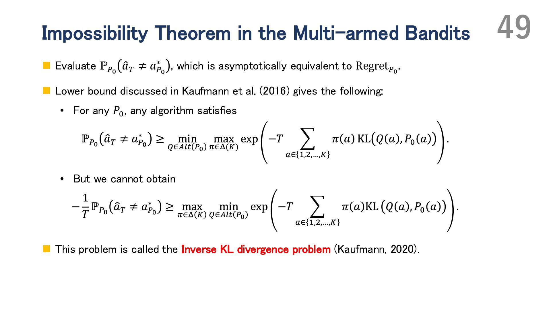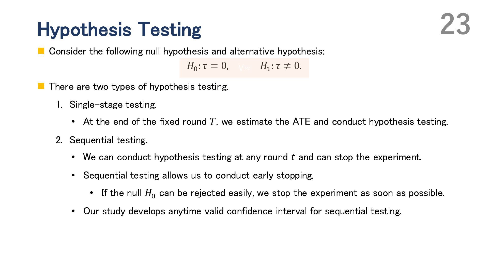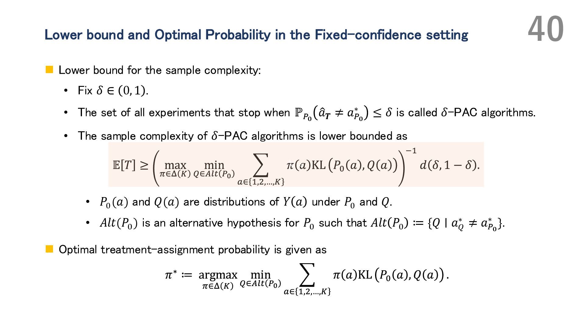 Adaptive experimental design has attracted attention for improving the efficiency of both average treatment effect (ATE) estimation and treatment choice. In such designs, the probability of assigning treatments (i.e., the propensity score) can be updated during the experiment based on previously collected observations. In ATE estimation, the objective is to reduce the estimation error of the ATE, whereas in treatment choice, the goal is to identify the best treatment—the one with the highest expected outcome. While ATE estimation typically involves binary treatments, treatment choice problems often consider multiple treatment options. In this talk, I begin by discussing adaptive experimental design for ATE estimation. I introduce the basic approach based on Neyman allocation, which provides a treatment-assignment probability that minimizes the asymptotic variance of ATE estimators, and then present several extensions, including adaptive optimization of the covariate distribution. Next, I address adaptive experimental design for treatment choice, also known as the best-arm identification problem, and highlight the challenges in developing “optimal” algorithms, especially in the presence of multiple treatments. I propose minimax and Bayes optimal algorithms for treatment choice in the setting without covariates. In particular, I generalize Neyman allocation to construct a minimax optimal algorithm. Finally, I discuss how incorporating covariates can further enhance the efficiency of treatment choice, focusing on conditional treatment choice (policy learning).