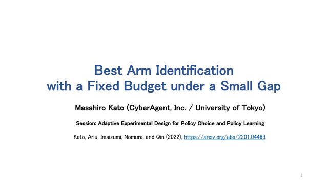 and Qin, C. (2022), “Best Arm Identification with a Fixed Budget under a Small Gap.” • Audibert, J.-Y., Bubeck, S., and Munos, R. (2010), “Best Arm Identification in Multi-Armed Bandits,” in COLT. • Bubeck, S., Munos, R., and Stoltz, G. (2011), “Pure exploration in finitely-armed and continuous-armed bandits,” Theoretical Computer Science. • Carpentier, A. and Locatelli, A. (2016), “Tight (Lower) Bounds for the Fixed Budget Best Arm Identification Bandit Problem,” in COLT • Chen, C.-H., Lin, J., Yücesan, E., and Chick, S. E (2000). Simulation budget allocation for further enhancing the efficiency of ordinal optimization. Discrete Event Dynamic Systems, • Garivier, A. and Kaufmann, E. (2016), “Optimal Best Arm Identification with Fixed Confidence,” in COLT. • Glynn, P. and Juneja, S. (2004), “A large deviations perspective on ordinal optimization,” in Proceedings of the 2004 Winter Simulation Conference, IEEE. • Kaufmann, E., Cappé, O., and Garivier, A. (2016), “On the Complexity of Best-Arm Identification in Multi-Armed Bandit Models,” JMLR. • Lai, T. and Robbins, H. (1985), “Asymptotically efficient adaptive allocation rules,” Advances in Applied Mathematics. • Manski, C. F. (2000), ”Identification problems and decisions under ambiguity: Empirical analysis of treatment response and normative analysis of treatment choice,” Journal of Econometrics. - (2002), ”Treatment choice under ambiguity induced by inferential problems,” Journal of Statistical Planning and Inference. - (2004), “Statistical treatment rules for heterogeneous populations,” Econometrica. • Manski, C. F. and Tetenov, A. (2016), “Sufficient trial size to inform clinical practice,” Proceedings of the National Academy of Science. • Stoye, J. (2009), “Minimax regret treatment choice with finite samples,” Journal of Econometrics. 35