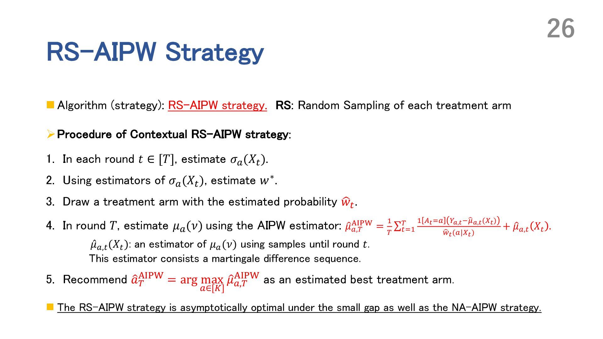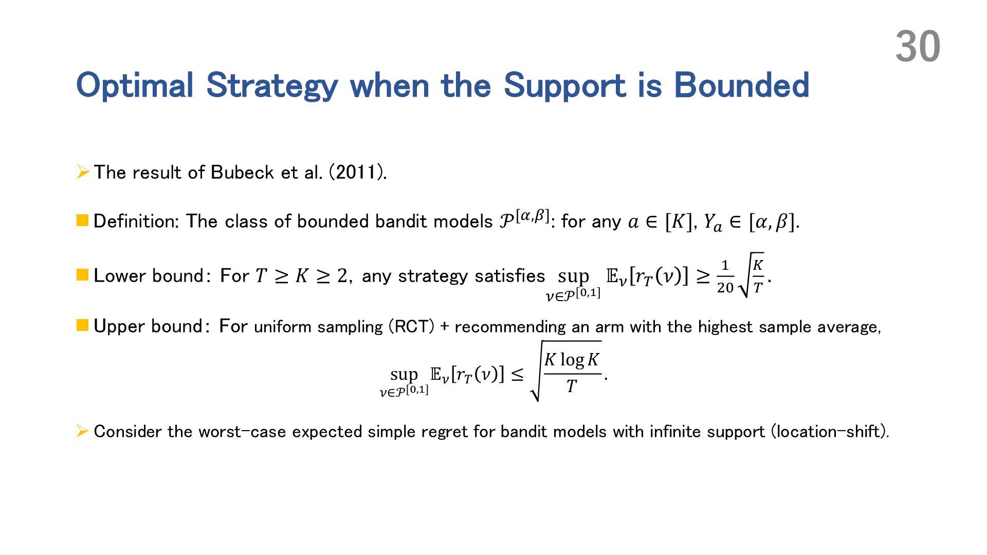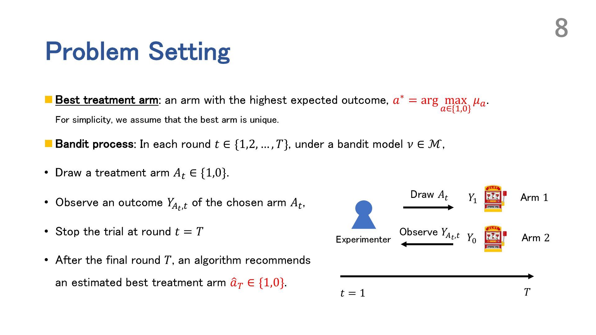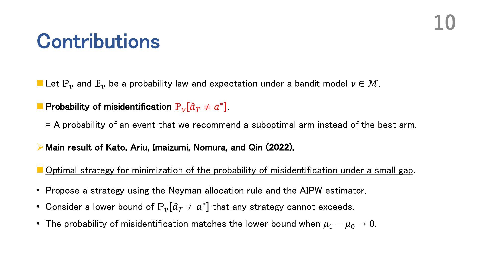 and Qin, C. (2022), โBest Arm Identification with a Fixed Budget under a Small Gap.โ โข Audibert, J.-Y., Bubeck, S., and Munos, R. (2010), โBest Arm Identification in Multi-Armed Bandits,โ in COLT. โข Bubeck, S., Munos, R., and Stoltz, G. (2011), โPure exploration in finitely-armed and continuous-armed bandits,โ Theoretical Computer Science. โข Carpentier, A. and Locatelli, A. (2016), โTight (Lower) Bounds for the Fixed Budget Best Arm Identification Bandit Problem,โ in COLT โข Chen, C.-H., Lin, J., Yรผcesan, E., and Chick, S. E (2000). Simulation budget allocation for further enhancing the efficiency of ordinal optimization. Discrete Event Dynamic Systems, โข Garivier, A. and Kaufmann, E. (2016), โOptimal Best Arm Identification with Fixed Confidence,โ in COLT. โข Glynn, P. and Juneja, S. (2004), โA large deviations perspective on ordinal optimization,โ in Proceedings of the 2004 Winter Simulation Conference, IEEE. โข Kaufmann, E., Cappรฉ, O., and Garivier, A. (2016), โOn the Complexity of Best-Arm Identification in Multi-Armed Bandit Models,โ JMLR. โข Lai, T. and Robbins, H. (1985), โAsymptotically efficient adaptive allocation rules,โ Advances in Applied Mathematics. โข Manski, C. F. (2000), โIdentification problems and decisions under ambiguity: Empirical analysis of treatment response and normative analysis of treatment choice,โ Journal of Econometrics. - (2002), โTreatment choice under ambiguity induced by inferential problems,โ Journal of Statistical Planning and Inference. - (2004), โStatistical treatment rules for heterogeneous populations,โ Econometrica. โข Manski, C. F. and Tetenov, A. (2016), โSufficient trial size to inform clinical practice,โ Proceedings of the National Academy of Science. โข Stoye, J. (2009), โMinimax regret treatment choice with finite samples,โ Journal of Econometrics. 35