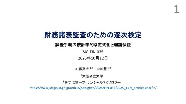 𝑟 − 𝜃𝐻 ]),すべての𝑡において以下が成立 ℙ𝑝 𝑡期に仮説𝐾を採択 = ℙ𝑝 Ƹ 𝑝𝑡 > 𝜅𝑟 𝑡 , ∀𝑠 ∈ 𝑡 − 1 Ƹ 𝑝𝑠 ∈ [𝜅𝑟 𝑠 , 𝜅𝑟 𝑠 ] ≤ 𝛼 • 同様に,仮説𝐾が正しい場合(for all 𝑝 ∈ [ 𝑟 + 𝜃𝐾 , 1]),すべての𝑡において以下が成立 ℙ𝑝 𝑡期に仮説𝐻を採択 = ℙ𝑝 Ƹ 𝑝𝑡 < 𝜅𝑟 𝑠 , ∀𝑠 ∈ 𝑡 − 1 Ƹ 𝑝𝑠 ∈ [𝜅𝑟 𝑠 , 𝜅𝑟 𝑠 ] ≤ 𝛼 ◼ ある𝑡期の誤判断確率は過去の系列 𝜅𝑟 𝑠 , 𝜅𝑟 𝑠 𝑠=1 𝑡−1 に依存 • 𝑡 = 1から順番に決定すれば良い • 𝑡の時点では,過去の 𝜅𝑟 𝑠 , 𝜅𝑟 𝑠 𝑠=1 𝑡−1 を所与として, 実際に候補となる 𝜅𝑟 𝑡 , 𝜅𝑟 𝑡 のもとで誤判断確率を計算 • 誤判断確率を制御しつつ,可能な限り小さい𝜅𝑟 𝑡 と可能な限り大きい𝜅𝑟 𝑠 を選ぶ