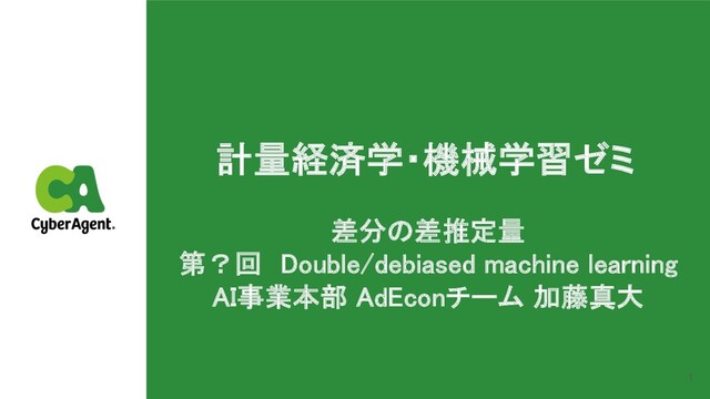 Econometrics Journal 2020 • 差分の差推定量のためのDMLの論文. • https://academic.oup.com/ectj/article/23/2/177/5722119 DMLの応用例:差分の差推定量 2
