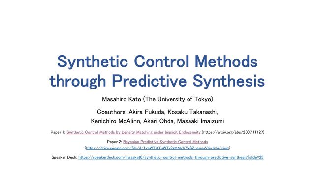 conflict: A case study of the basque country.” American Economic Review, 2003. • Abadie, A., Diamond, A., and Hainmueller, J. “Synthetic control methods for comparative case studies: Estimating the effect of california’s tobacco control program.” Journal of the American Statistical Association, 2010 • Abadie, A., Diamond, A., and Hainmueller, J. “Comparative politics and the synthetic control method.” American Journal of Political Science, 2015 • Ferman, B. and Pinto, C. Synthetic controls with imperfect pretreatment fit. Quantitative Economics, 12(4):1197–1221, 2021. • McAlinn, K. and West, M., “Dynamic Bayesian predictive synthesis in time series forecasting,” Journal of econometrics, 2019 • McAlinn, K., Aastveit, K. A., Nakajima, J., and West, M. “Multivariate Bayesian predictive synthesis in macroeconomic forecasting.” Journal of the American Statistical Association, 2020 • Shi, C., Sridhar, D., Misra, V., and Blei, D. On the assumptions of synthetic control methods. In AISTATS, pp. 7163–7175, 2022 • Takanashi, K. and McAlinn, K. “Predictions with dynamic bayesian predictive synthesis are exact minimax”, 2021 • West, M. and Harrison, P. J. “Bayesian Forecasting & Dynamic Models.” Springer Verlag, 2nd edition, 1997