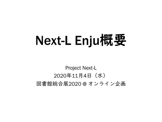 Next-L Enju概要 Project Next-L 2020年11月4日(水) 図書館総合展2020 @ オンライン企画