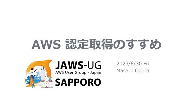 AWS 認定取得のすすめ 2023/6/30 Fri Masaru Ogura
