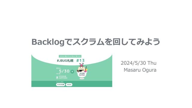 Backlogでスクラムを回してみよう 2024/5/30 Thu Masaru Ogura