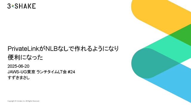 PrivateLink? - Amazon Virtual Private Cloud • Access Amazon RDS across VPCs using AWS PrivateLink and Network Load Balancer | AWS Database Blog • AWS が AWS PrivateLink 経由での VPC リソースへのアクセスを発表 - AWS • Securely share AWS resources across VPC and account boundaries with PrivateLink, VPC Lattice, EventBridge, and Step Functions | AWS News Blog • Access VPC resources through AWS PrivateLink - Amazon Virtual Private Cloud Copyright © 3-shake, Inc. All Rights Reserved. 参考リンク 20