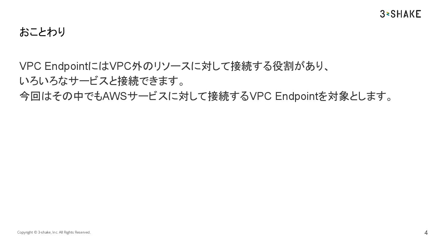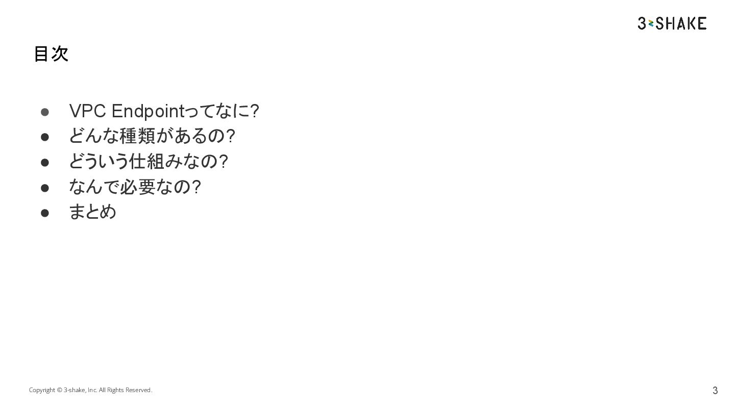 Copyright © 3-shake, Inc. All Rights Reserved. VPC Endpointってなに? 01