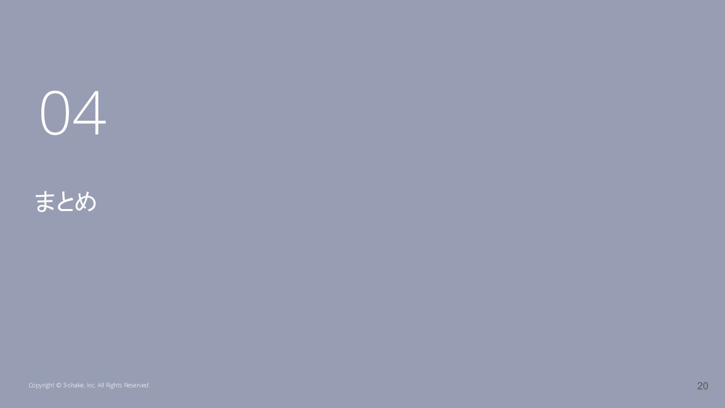 Copyright © 3-shake, Inc. All Rights Reserved. まとめ 04 20