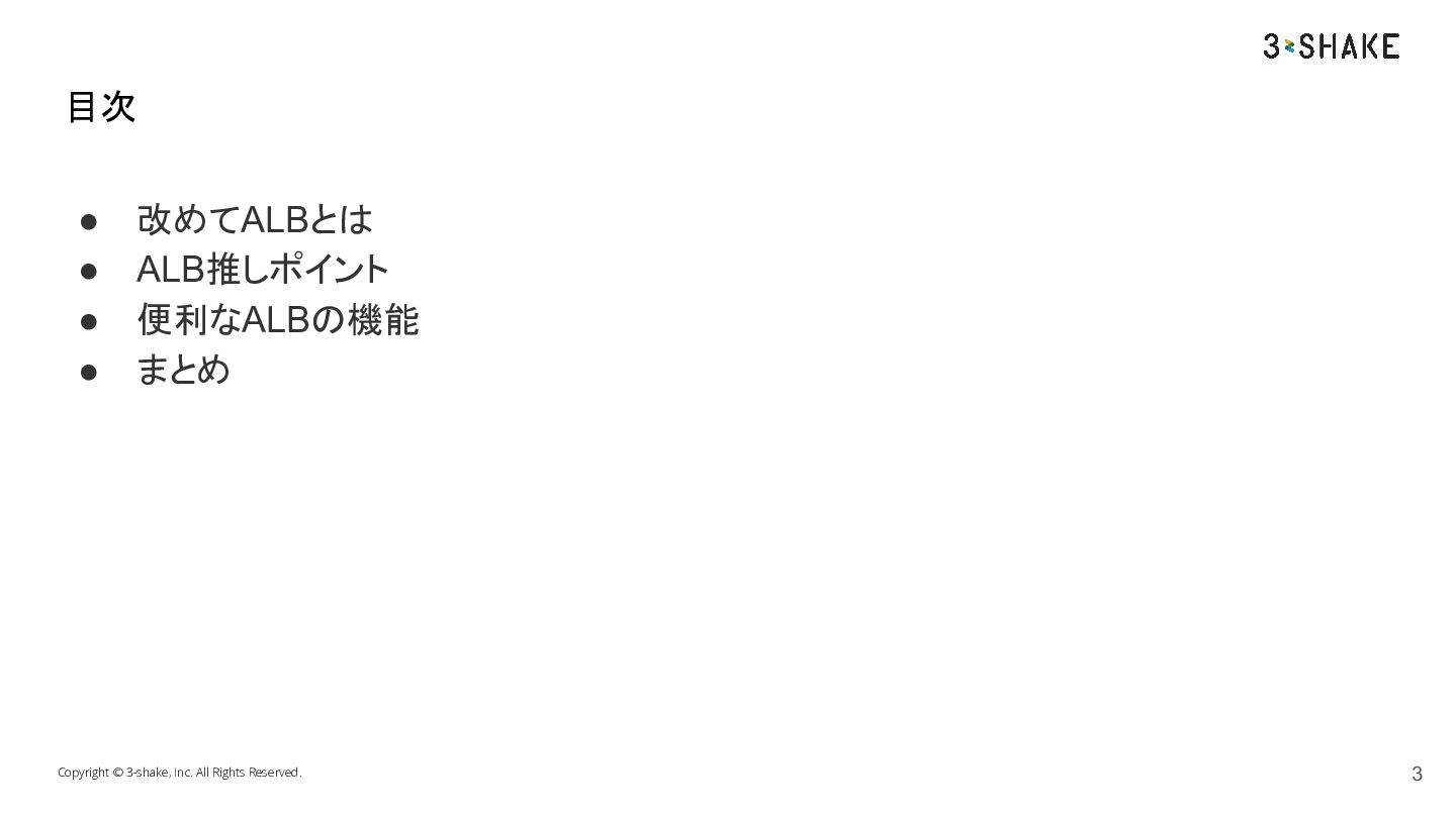 Copyright © 3-shake, Inc. All Rights Reserved. 改めてALBとは 01 4