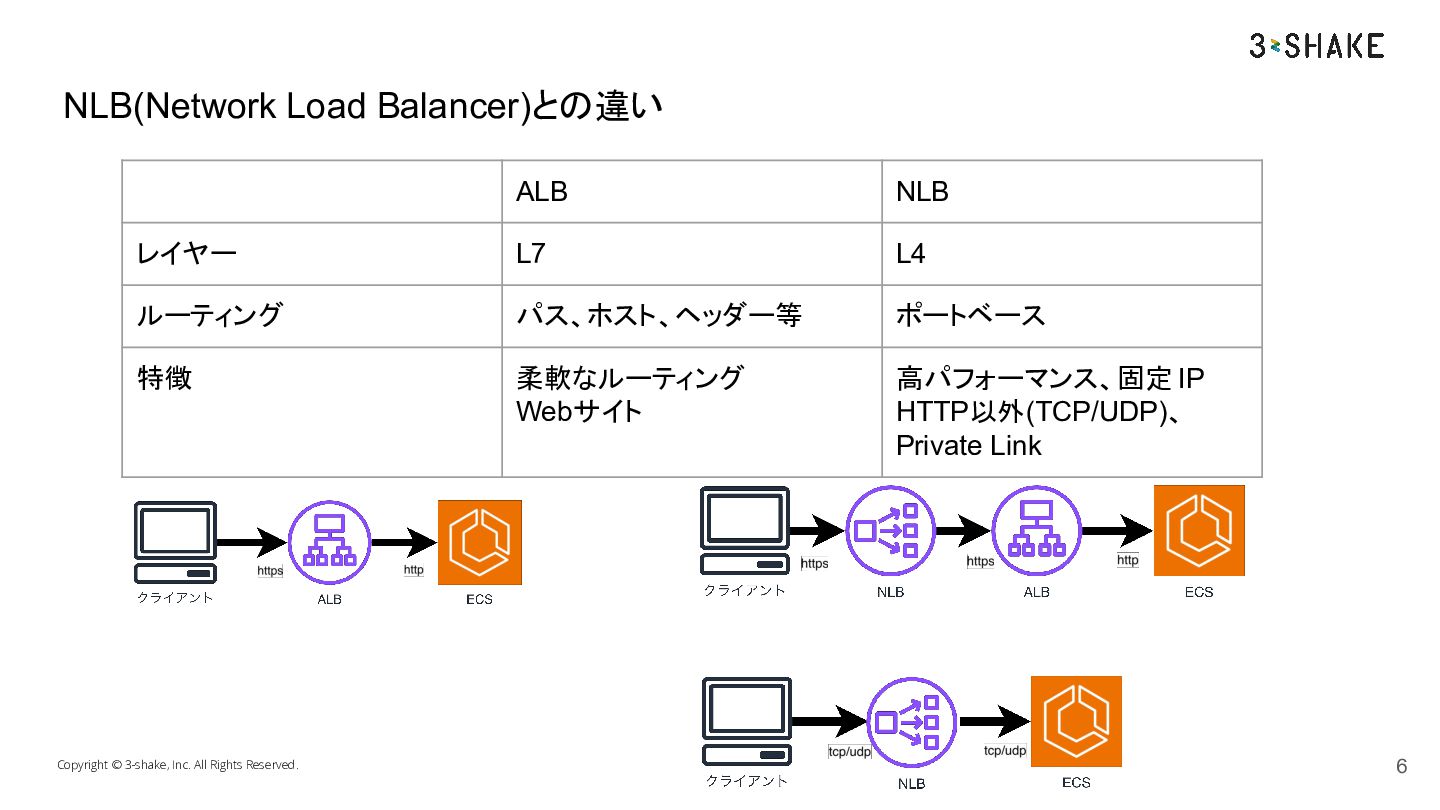 Copyright © 3-shake, Inc. All Rights Reserved. NLB(Network Load Balancer)との違い