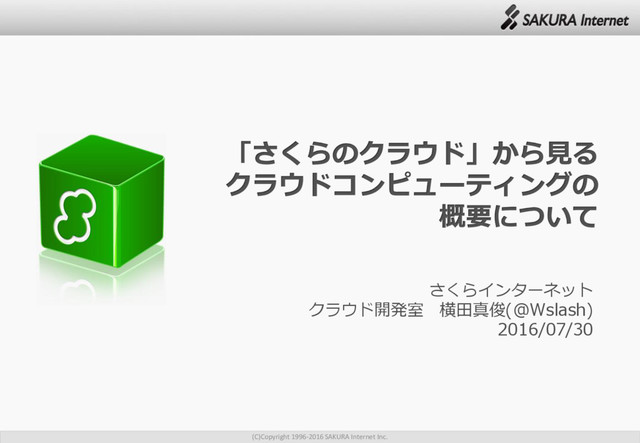 (C)Copyright 1996-2016 SAKURA Internet Inc. さくらインターネット クラウド開発室 横田真俊(@Wslash) 2016/07/30