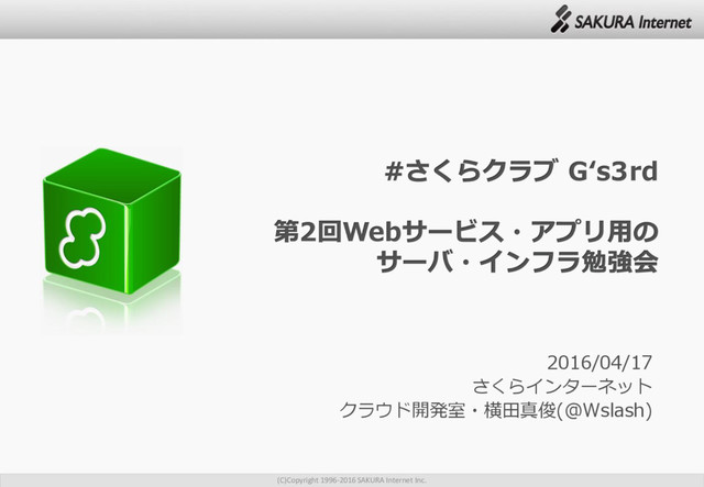 さくらクラブ G‘s3rd 第2回Webサービス・アプリ用のサーバ・インフラ勉強会