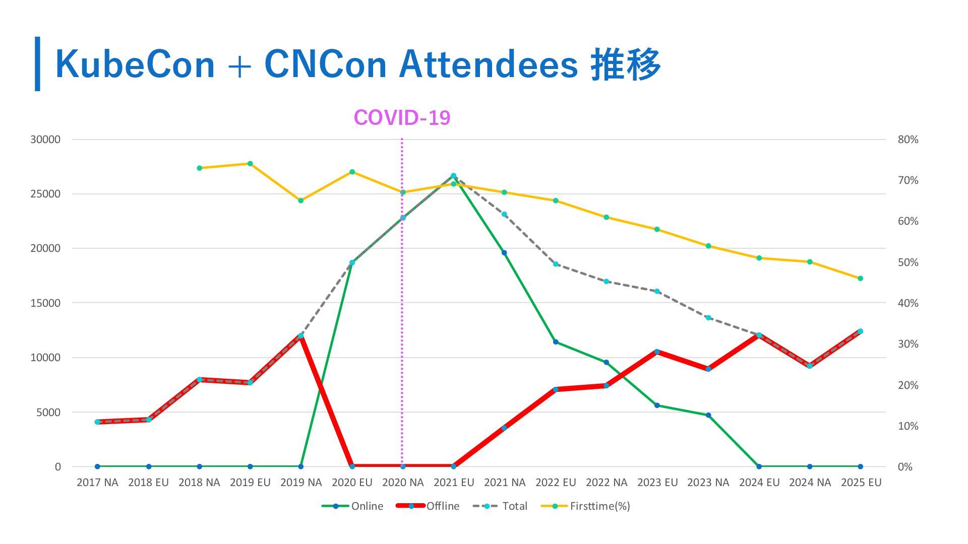 KubeCon + CNCon Attendees 推移 0% 10% 20% 30% 40%