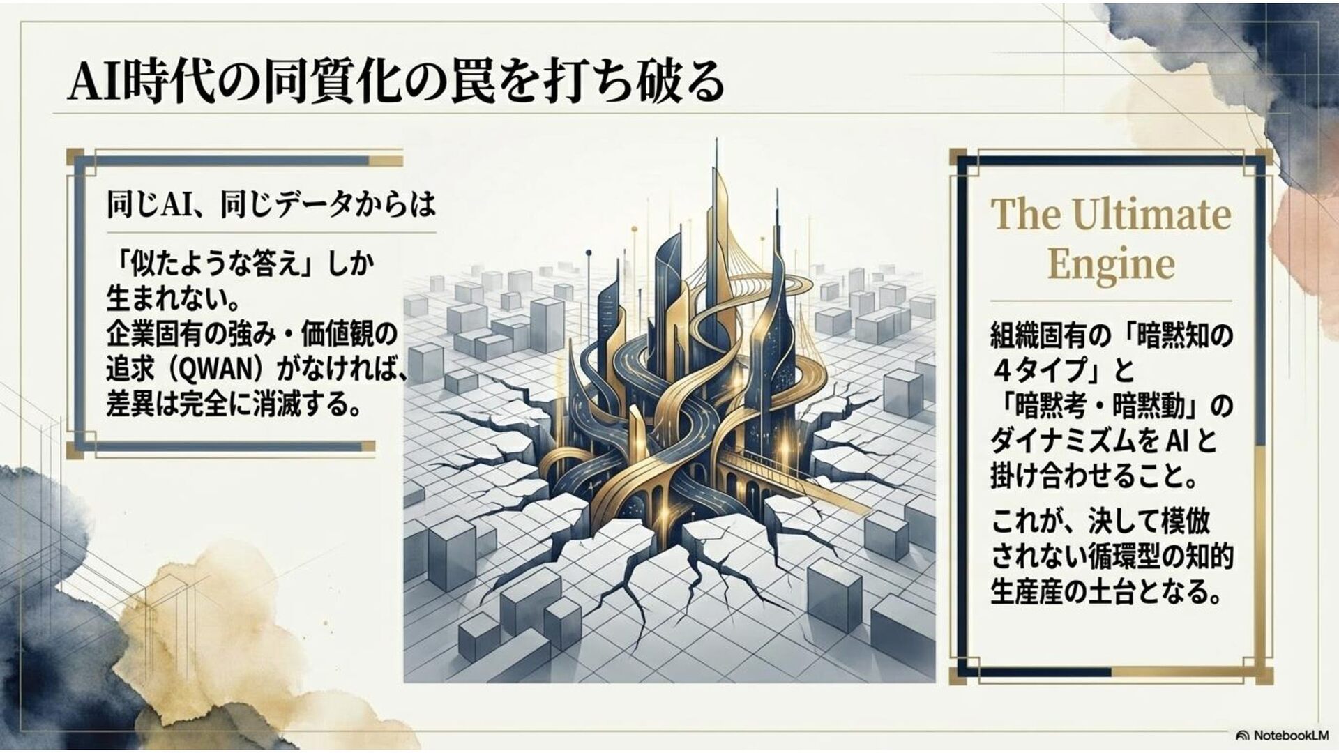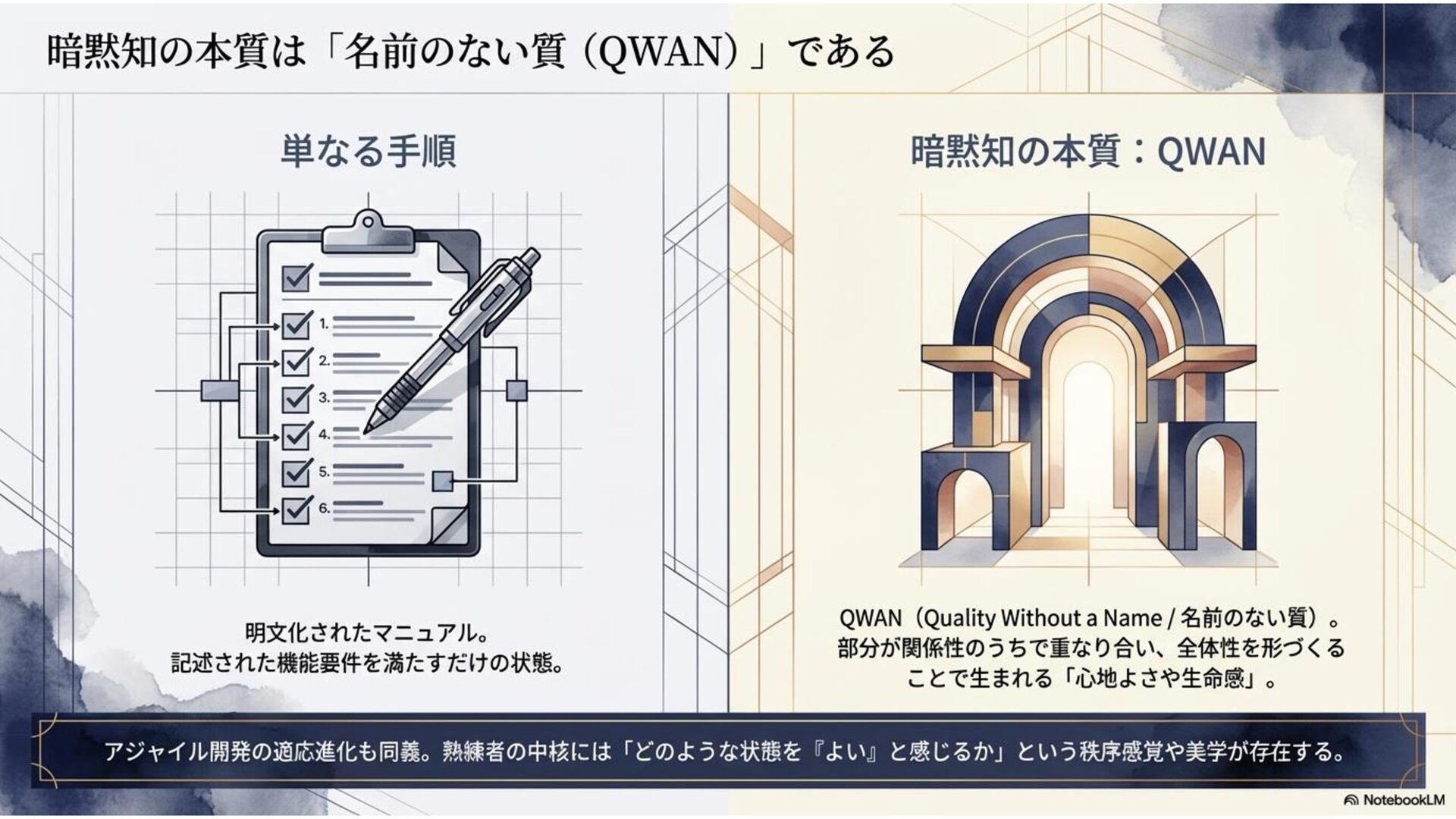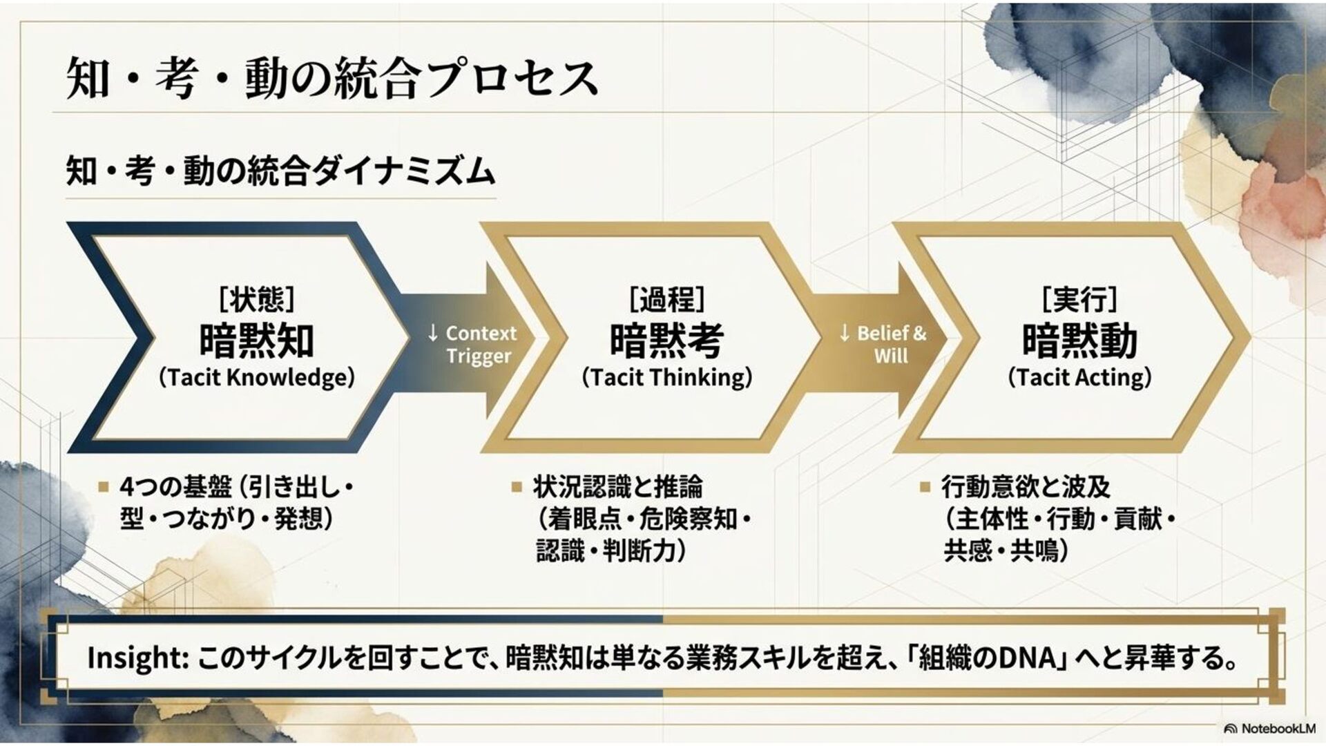 本ドキュメントは、AI時代だからこそ、企業・組織においてよく議論されるようになった「暗黙知」について、その解像度をあげるべく考察した内容になっています。
