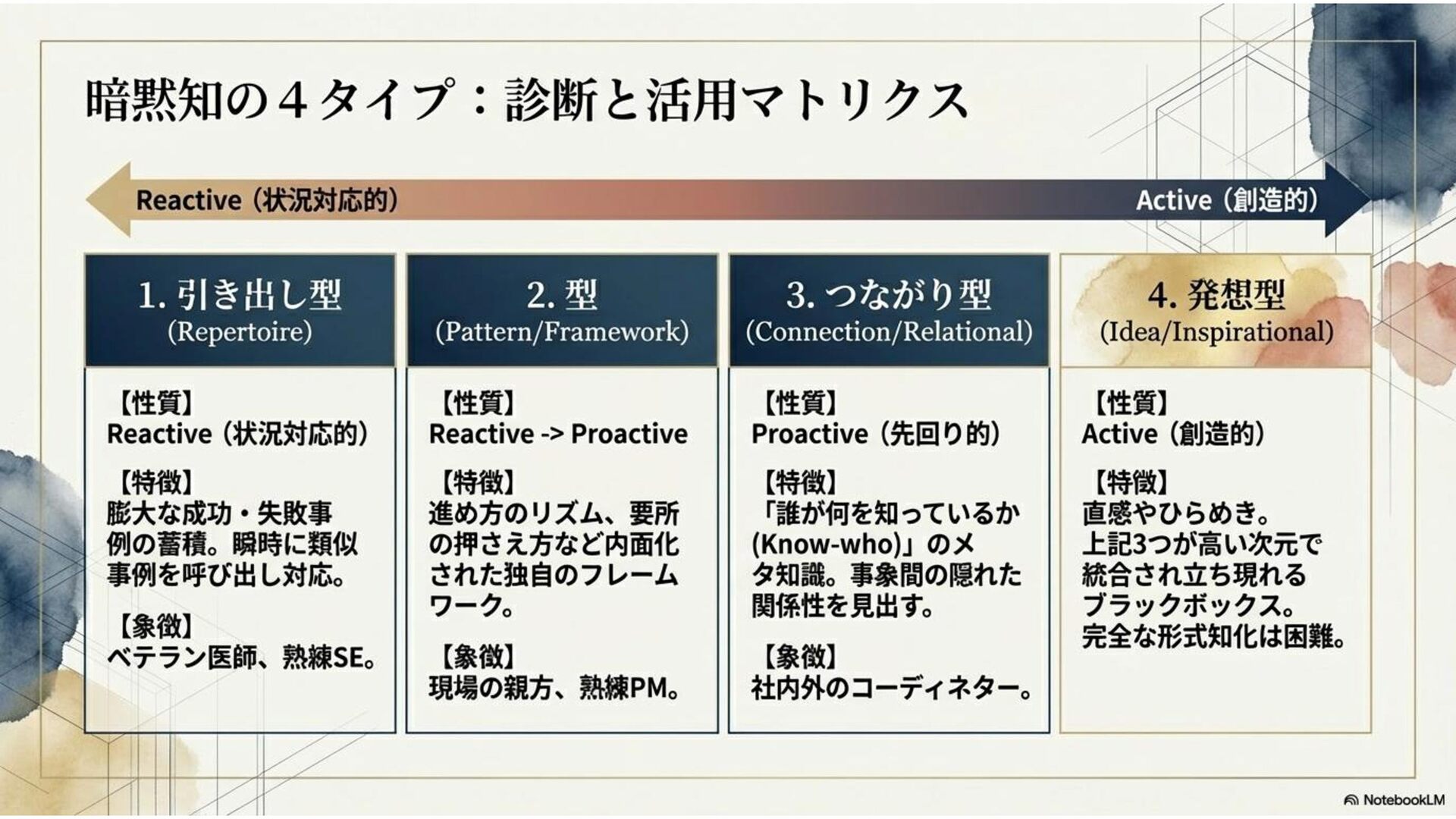 ■暗黙知について一歩踏み込んで考える - 暗黙知の4タイプと暗黙考・暗黙動へ https://note.com/masayamori/n/n9230d245fd88