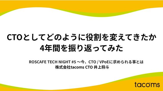 CTOとしてどのように役割を変えてきたか 4年間を振り返ってみた ROSCAFE TECH NIGHT #5 〜今、CTO / VPoEに求められる事とは 株式会社tacoms