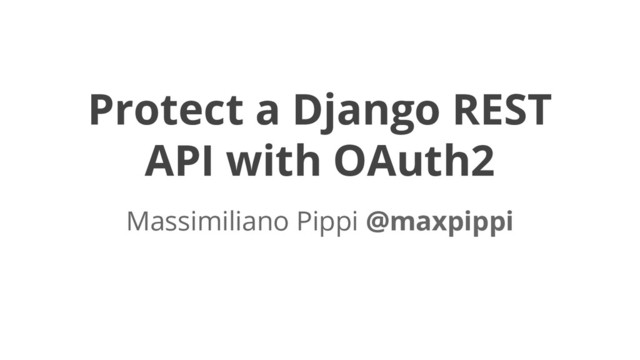 Protect a Django REST API with OAuth2 Massimiliano Pippi @maxpippi