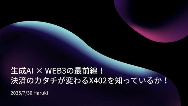 生成AI × WEB3の最前線! 決済のカタチが変わるX402を知っているか! 2025/7/30 Haruki