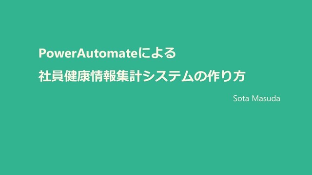 本資料は MS Power Automate の使い方を学ぶ為の学習資料である。 社内向けに作成した「社員の健康情報を集計するシステム」を事例として、 Power Automateの使い方を非エンジニア向けに説明する。