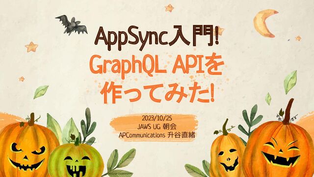 AppSync入門! GraphQL APIを 作ってみた! 2023/10/25 JAWS UG 朝会 APCommunications 升谷直緒