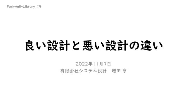 良い設計と悪い設計の違い 2022年11月7日 有限会社システム設計 増田 亨 Forkwell-Library #9