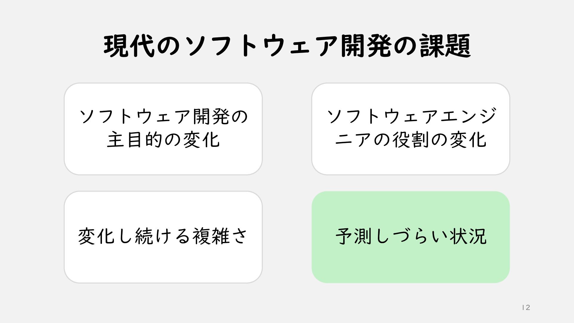 ①現代のソフトウェア開発の課題