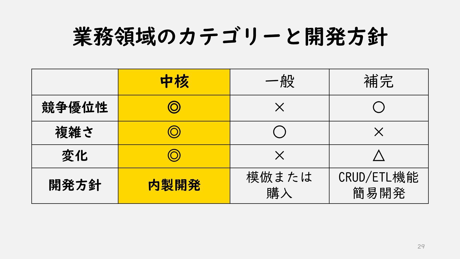3. 業務領域のカテゴリーと開発方針 中核 一般 補完 競争優位性 ◎ × 〇 複雑さ ◎