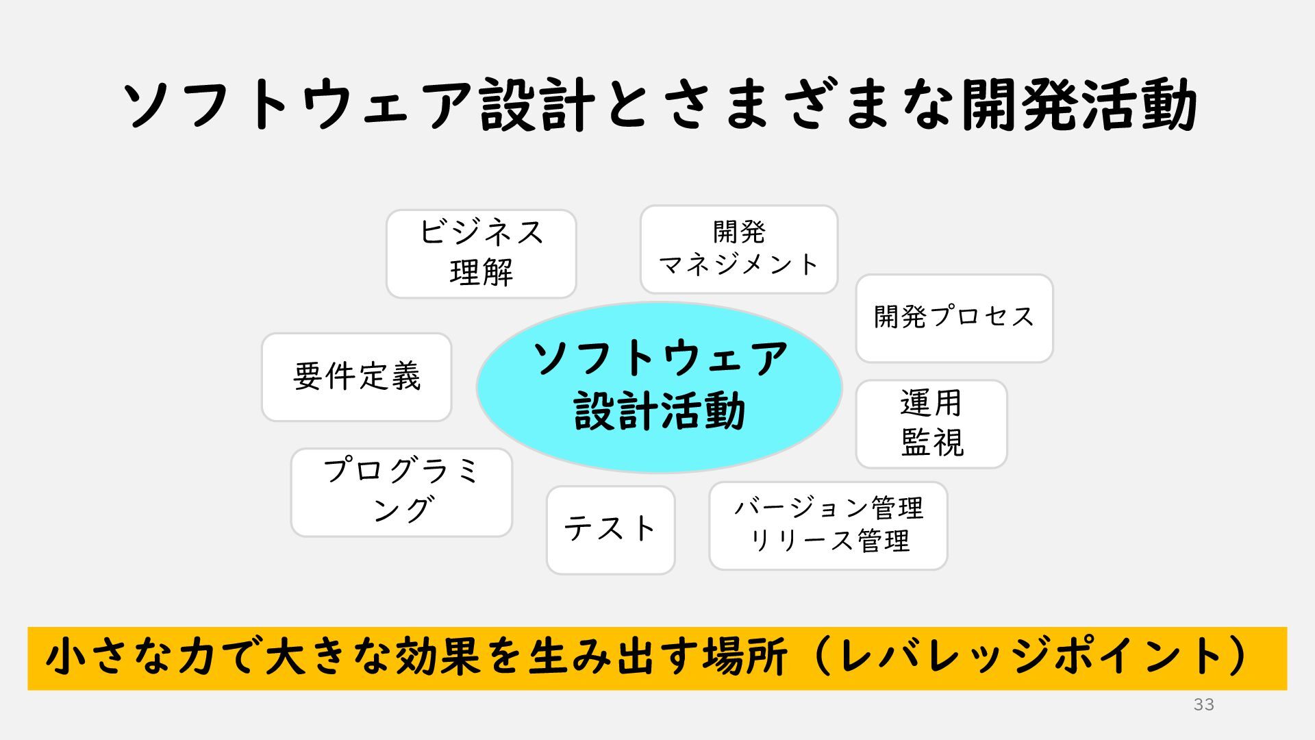 バージョン管理 リリース管理 運用 監視 開発プロセス 開発 マネジメント 小さな力で大きな効果を生み出す場所(レバレッジポイント)