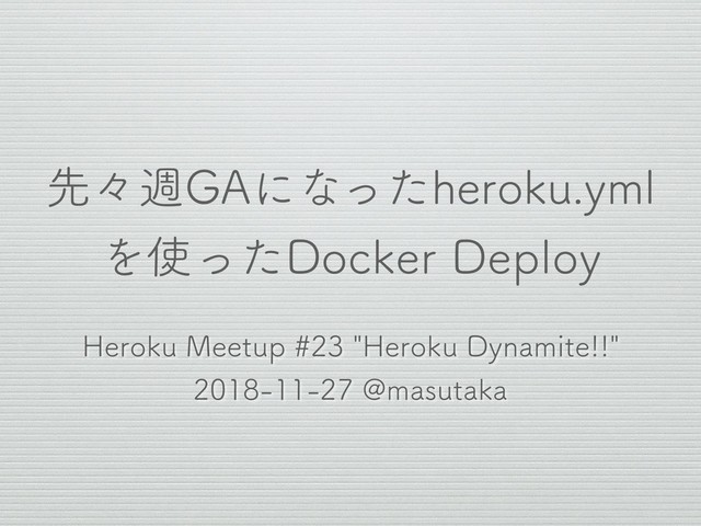 『先々週GAになったheroku.ymlを使ったDocker Deploy』 Heroku Meetup #23 "Heroku Dynamite!!" の発表資料です。 https://masutaka.net/chalow/2018-11-28-1.html