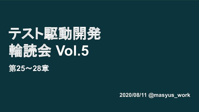 テスト駆動開発 輪読会 Vol.5 第25〜28章 2020/08/11 @masyus_work