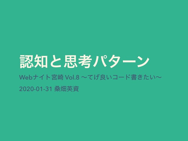 ೝͱࢥߟύλʔϯ WebφΠτٶ࡚ Vol.8 ʙͯ͛ྑ͍ίʔυॻ͖͍ͨʙ 2020-01-31 ܂ാӳࢿ