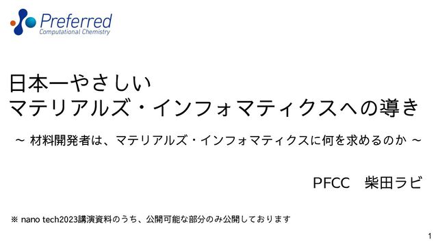 nano tech2023でのPFCC特別講演の資料です(公開可能な部分のみアップしております)。