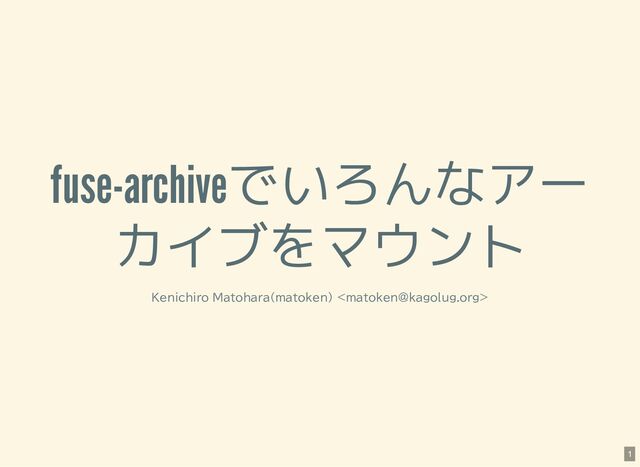 アーカイブ内のファイルにアクセス $ fuse-archive linux-6.8.2.tar.xz fuse-archive: Created mount point 'linux-6.8.2' $ mount | grep linux fuse-archive on /home/matoken/Downloads/linux-6.8.2 type fuse.fuse-archive (ro,nosuid,nodev,relatime,user_id=1000,group_id=1000) $ grep linux /etc/mtab fuse-archive /home/matoken/Downloads/linux-6.8.2 fuse.fuse-archive ro,nosuid,nodev,relatime,user_id=1000,group_id=1000 0 0 $ ls linux-6.8.2/linux-6.8.2/ COPYING Documentation Kconfig MAINTAINERS README block crypto fs init ipc lib net samples security tools virt CREDITS Kbuild LICENSES Makefile arch certs drivers include io_uring kernel mm rust scripts sound usr 1 2 3 4 9