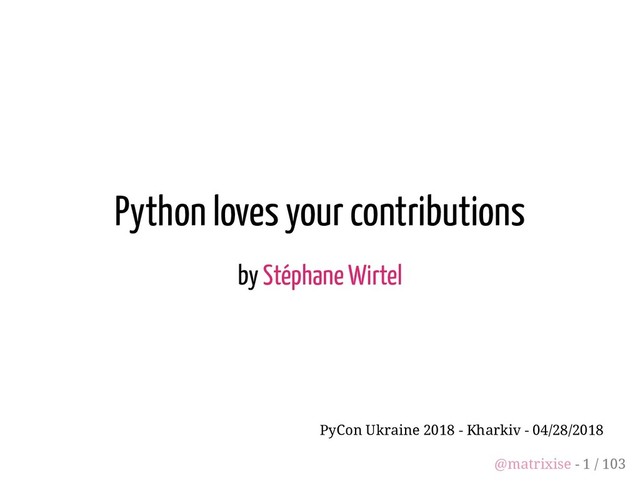 community" Brett Cannon for his sentence "Came for the language, stayed for the community" Images http://www.pierre-leautey.fr/lagence-de-communication-et-marketing-ds- consulting-de-pierrette-sicot/ @matrixise - 103 / 103