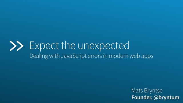 in your code base • Or in the frameworks you use • Doesn’t matter where errors happen, poor user impression • With JS codebases in the size of MBs, cannot ignore error handling + logging • Good news - it’s easy