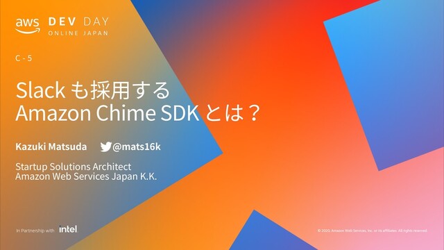 rights reserved. In Partnership with Slack も採⽤する Amazon Chime SDK とは? Kazuki Matsuda @mats16k Startup Solutions Architect Amazon Web Services Japan K.K. C - 5