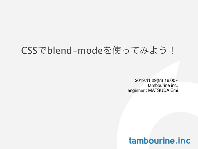 CSSͰblend-modeΛͬͯΈΑ͏ʂ 2019.11.29(fri) 18:00~ tambourine inc. enginner : MATSUDA Emi