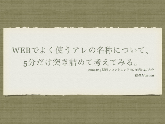 WEBͰΑ͘͏ΞϨͷ໊শʹ͍ͭͯɺ 5͚ͩಥ͖٧Ίͯߟ͑ͯΈΔɻ 2016.12.3 ؔϑϩϯτΤϯυUG ΕLTେձ EMI Matsuda