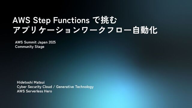 AWS Step Functions で挑む アプリケーションワークフロー自動化 Hidetoshi Matsui Cyber Security Cloud